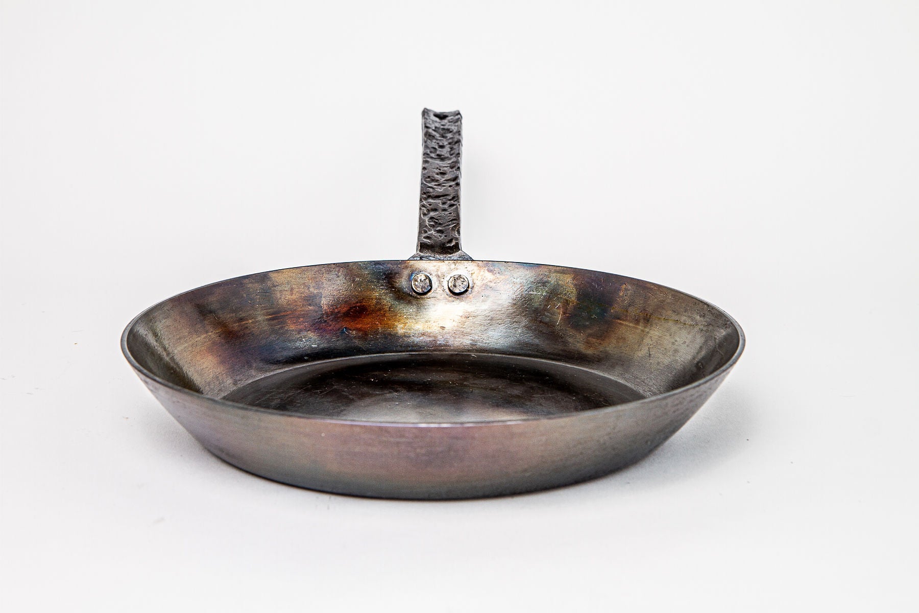 Even though everyone wants to feel like a blacksmith once in a while, NEVER EVER quench your hot carbon steel pan in cold water! This can lead to warpage in the steel.
